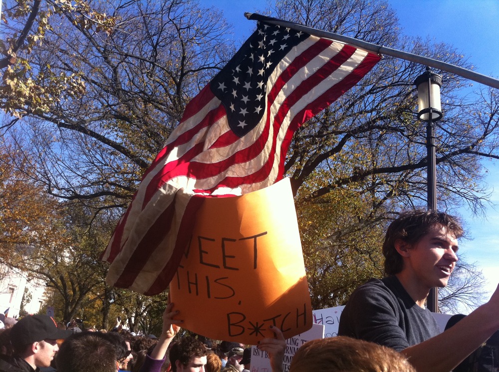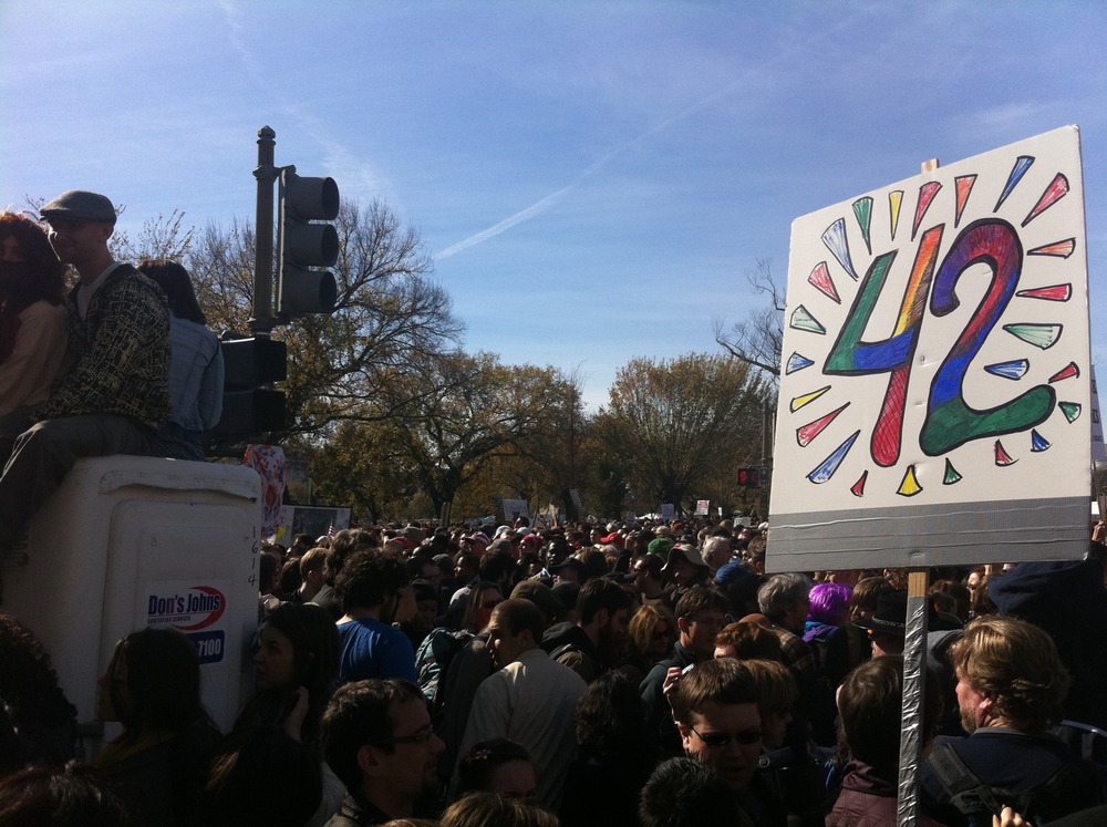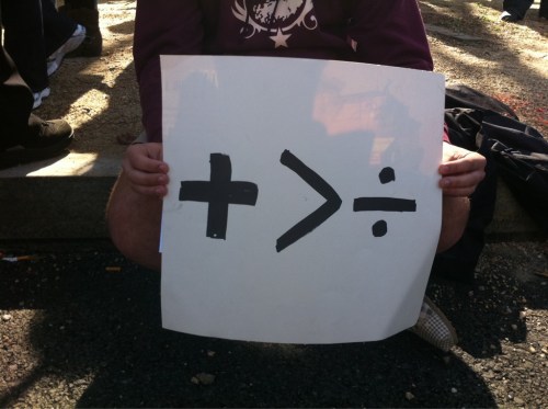 I saw hundreds of signs on the Mall today. One was notable for its clarity.