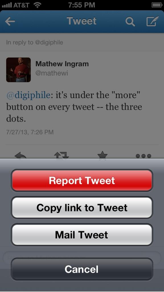 Adding reporting to individual tweets, however, is a relatively new change that was not announced on the Twitter blog or through the @Safety or @Support accounts.