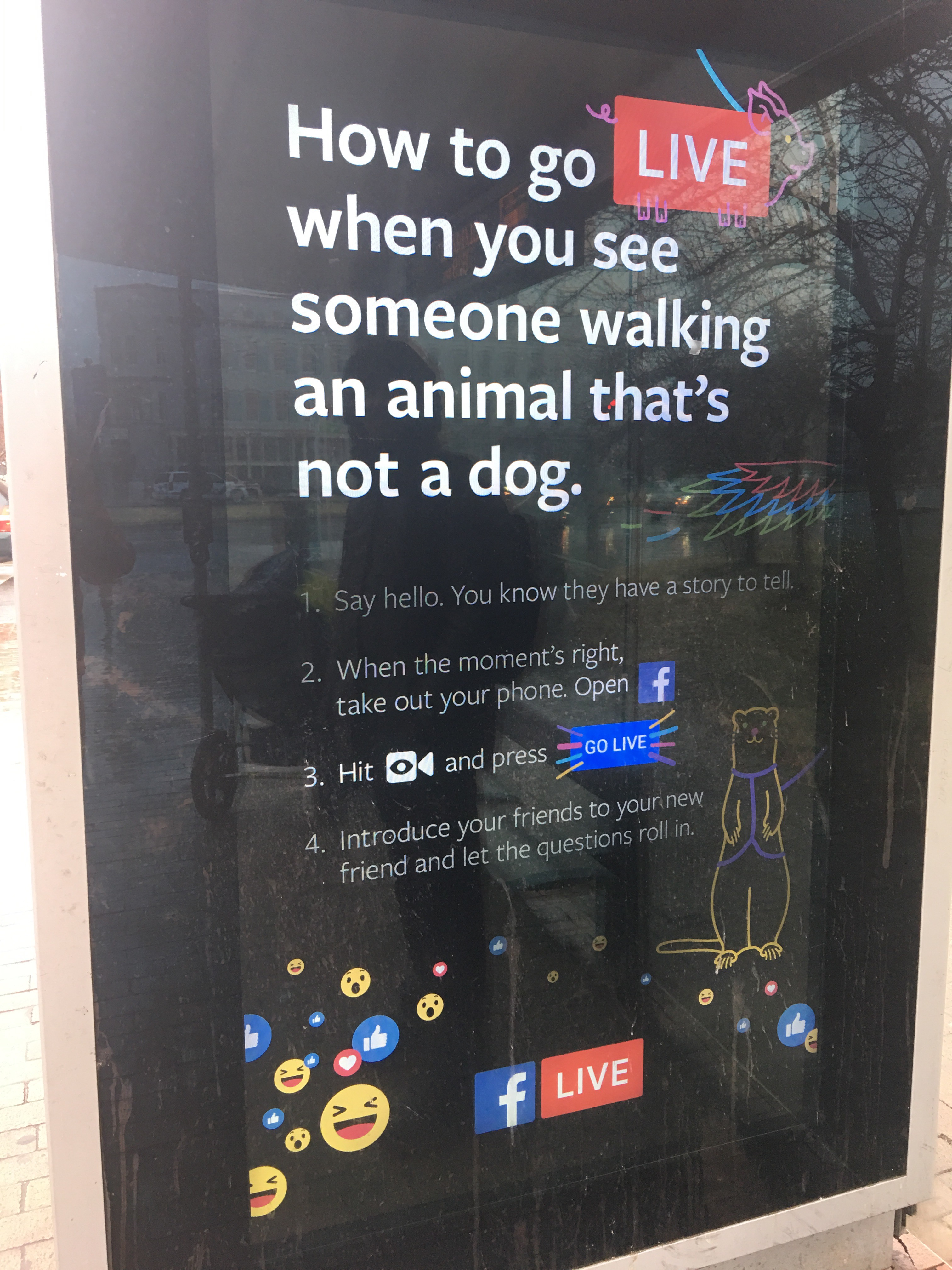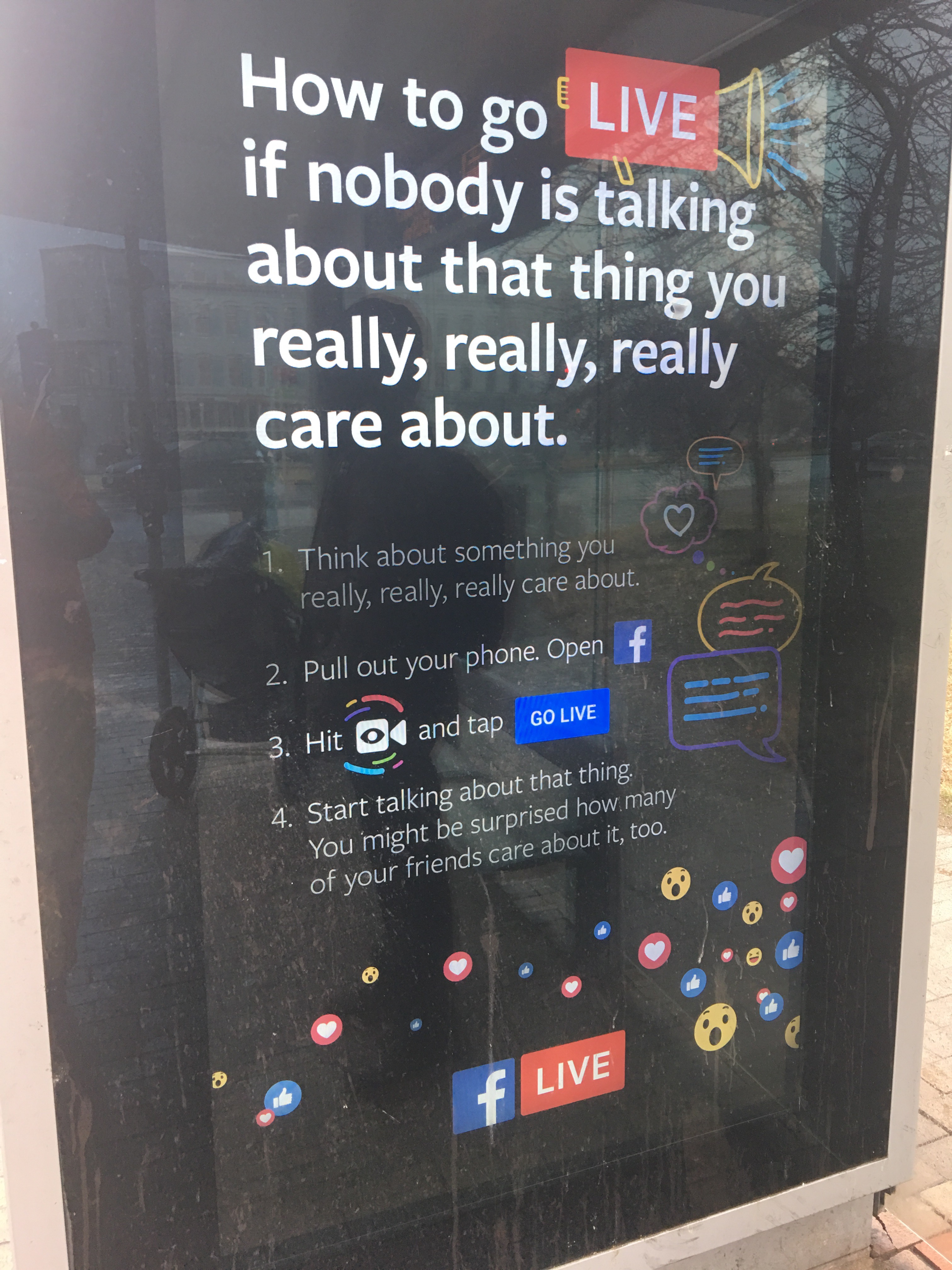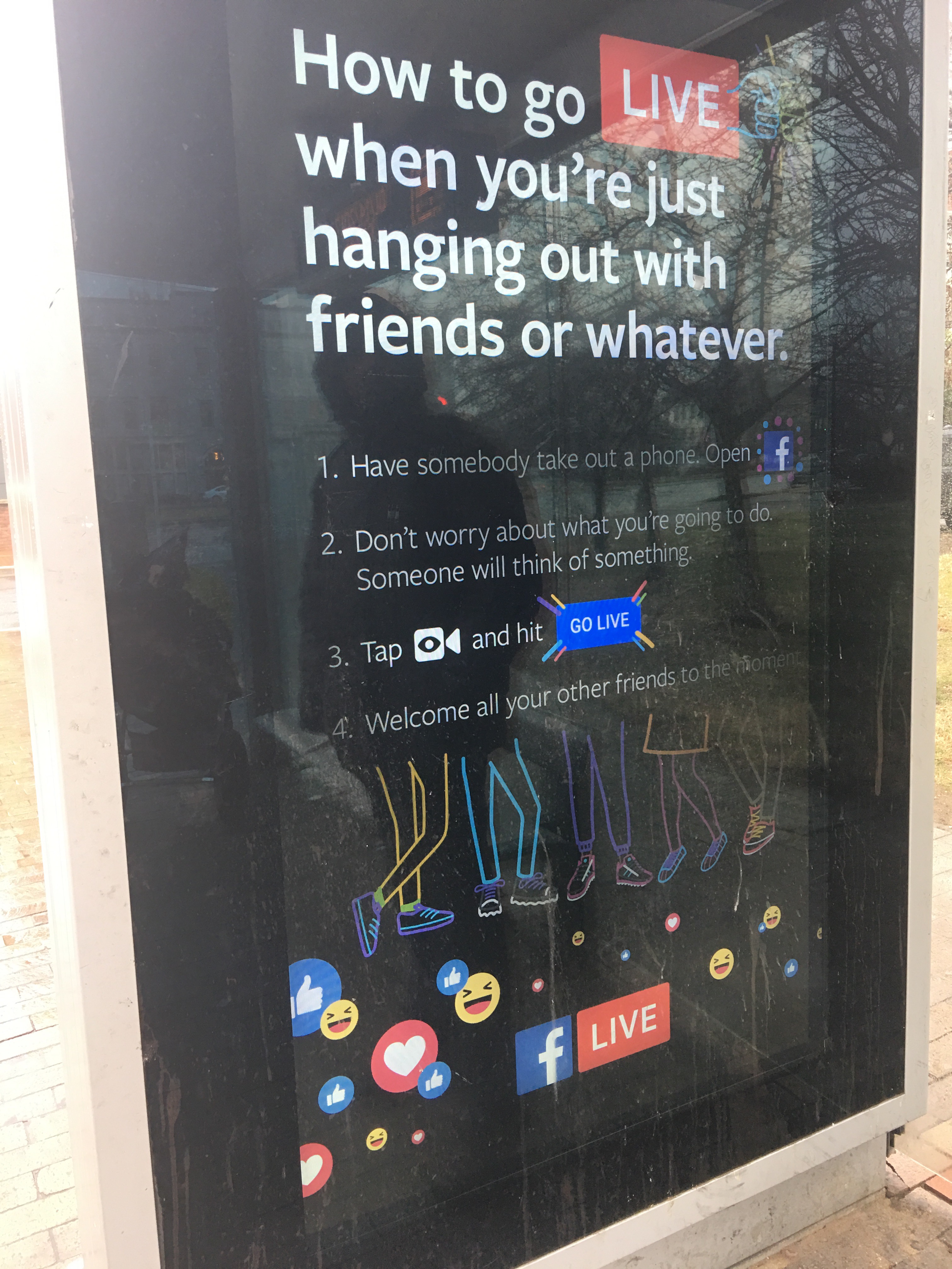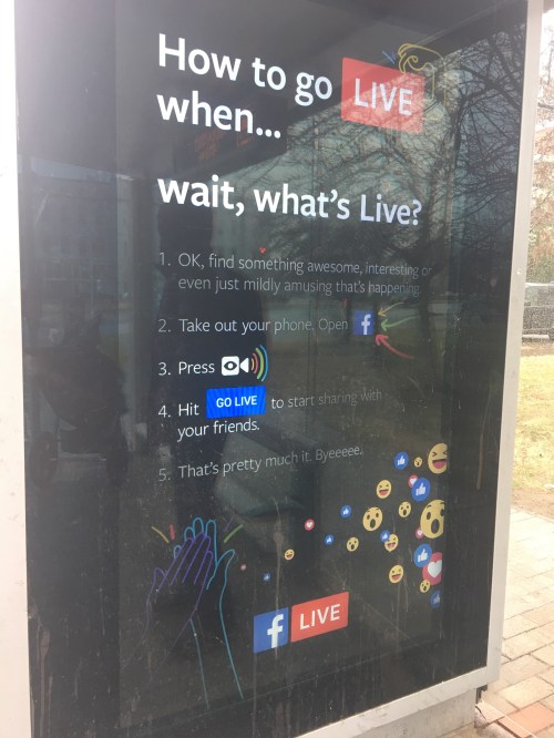 In this ad campaign for Facebook Live at DC bus stop, they’re urging users to film people with no caveats or ethics.