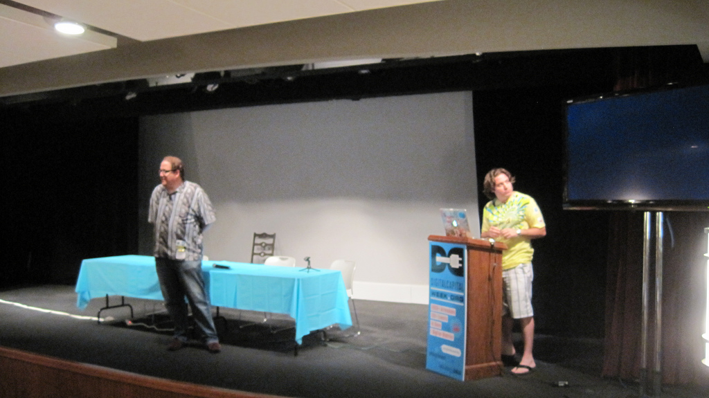 Peter Corbett may have worn shorts and a t-shirt, as seen on the left, but, in his role, it didn’t matter. Since I know him and have respect for the work he’d done for D.C. Week, at iStrategy Labs for Apps for the Army, and other initiatives, I know what he’s done.