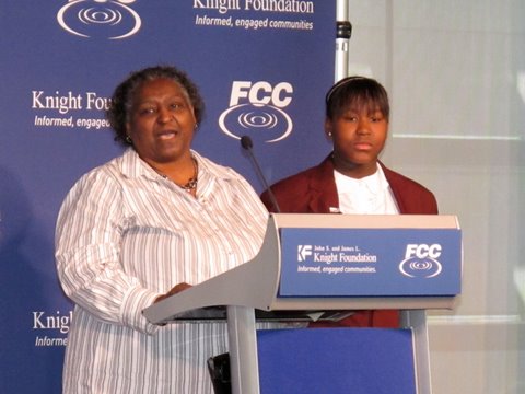 Florence Pearson and her daughter speak at the Newseum. Picture courtesy of FCC.