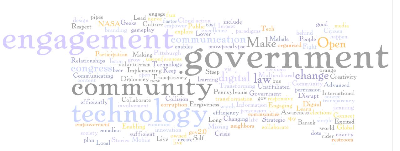 For those more technically inclined, it might be useful to talk about open data, mashups, Data.gov, the Open Government directive, XML, XBRL, virtualization, cloud computing, social media and a host of other terms that have meaning in context but without prior knowledge do little to inform the public about what, precisely, the “2.0” means. Most people have some sense of what “government” is, though there’s no shortage of opinion about how it should be constituted, run, regulated, managed or funded. Those discussions go back to the earliest days of humanity, well before organizing principles or rules emerged from Hammurabi or were enshrined on the Magna Carta or constitutions.