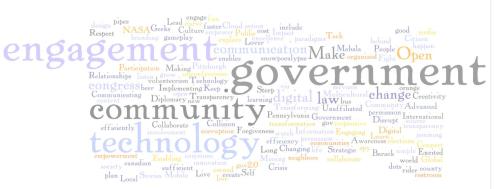 “We need to establish our priorities as a nation, with citizens as the think tank,” said Dash.” If we can go from six people in closed door room to sixty thousand addressing a problem, that will be a small win.” Dash asserted that the disruptive influence of online collaborative tools will cause “entire federal agencies will be transformed, just as newspapers have been.”